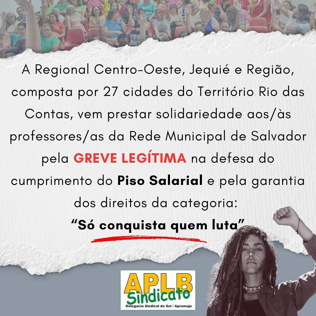 A REGIONAL CENTRO-OESTE, JEQUIÉ E REGIÃO, SE SOLIDARIZA COM OS/AS PROFESSORES/AS DA REDE MUNICIPAL DE SALVADOR.