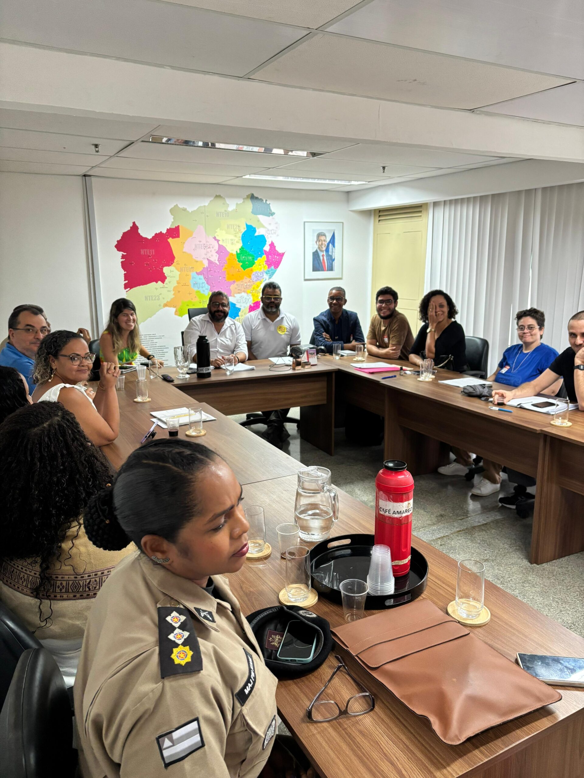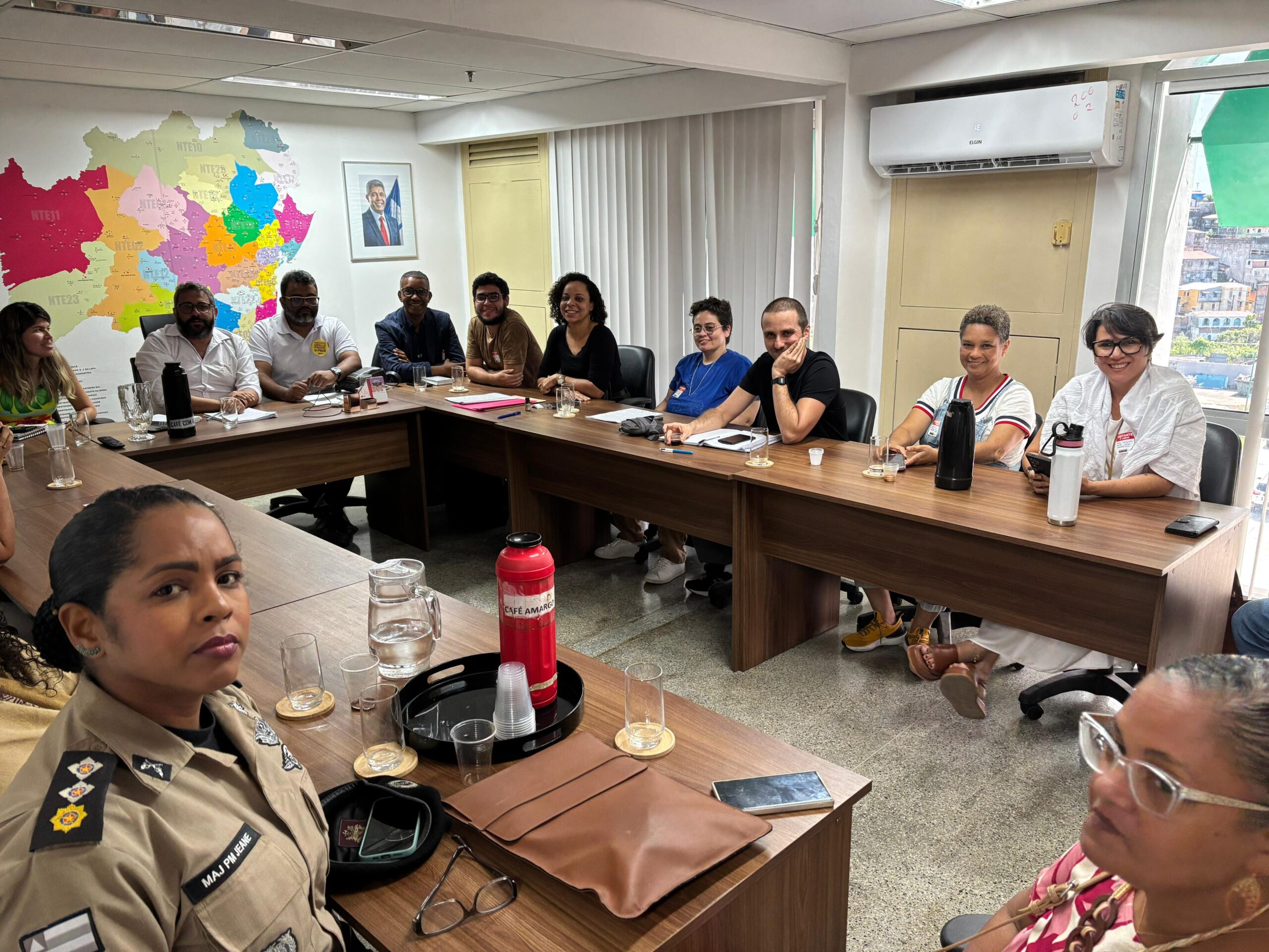 O encontro aconteceu na Secretaria Estadual de Educação e contou com a presença dos professores da escola, do coordenador da CONTE/SEC (Coordenação Executiva de Projetos para a Educação), Ualson Reis, e dos diretores da APLB, Lucas Sobrinho e Reginaldo Alves, representando a entidade.