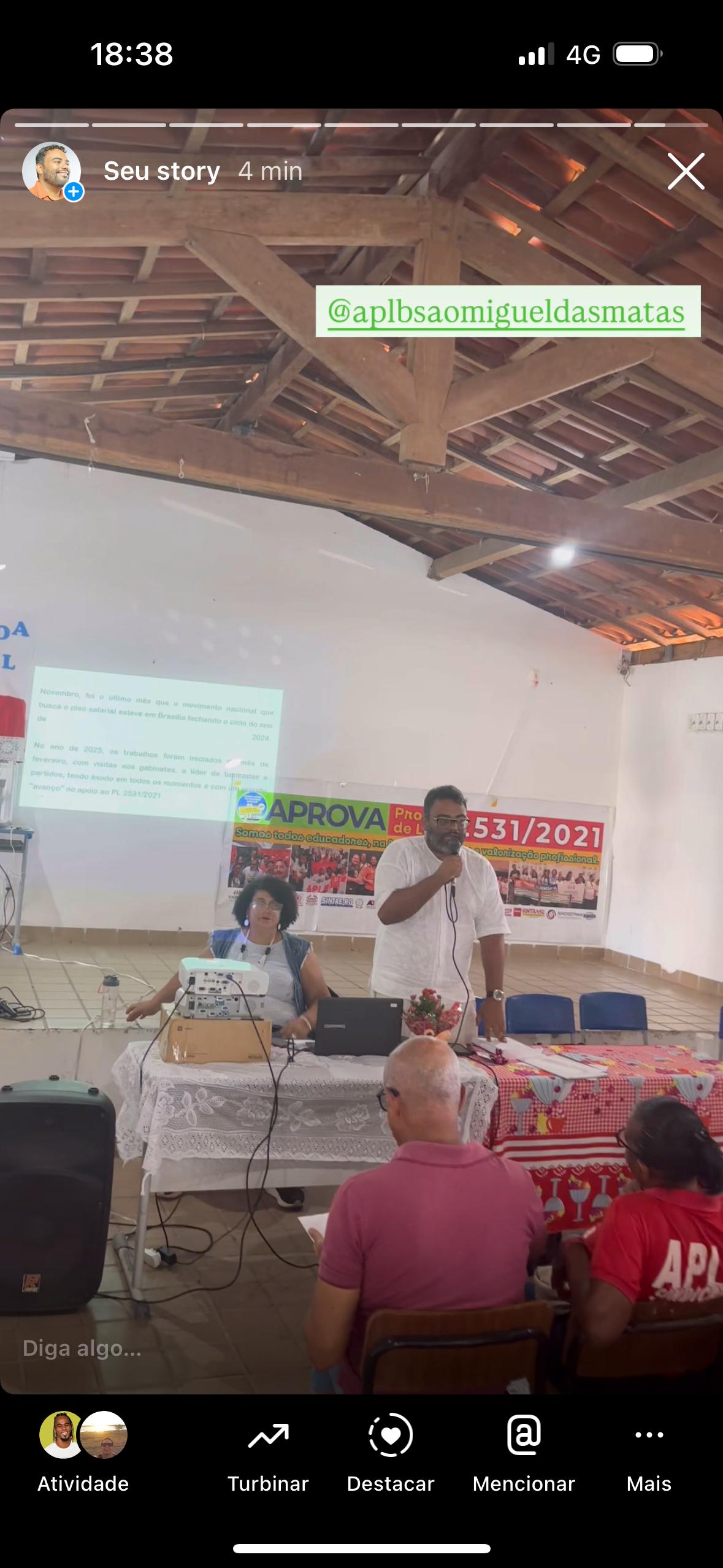 A diretoria executiva da APLB-Sindicato, representada por Hércia Azevedo e Reginaldo Alves, acompanhou a assembleia da rede municipal de São Miguel das Matas, Bahia, realizada na sexta-feira (21/03) pelo núcleo da APLB local.