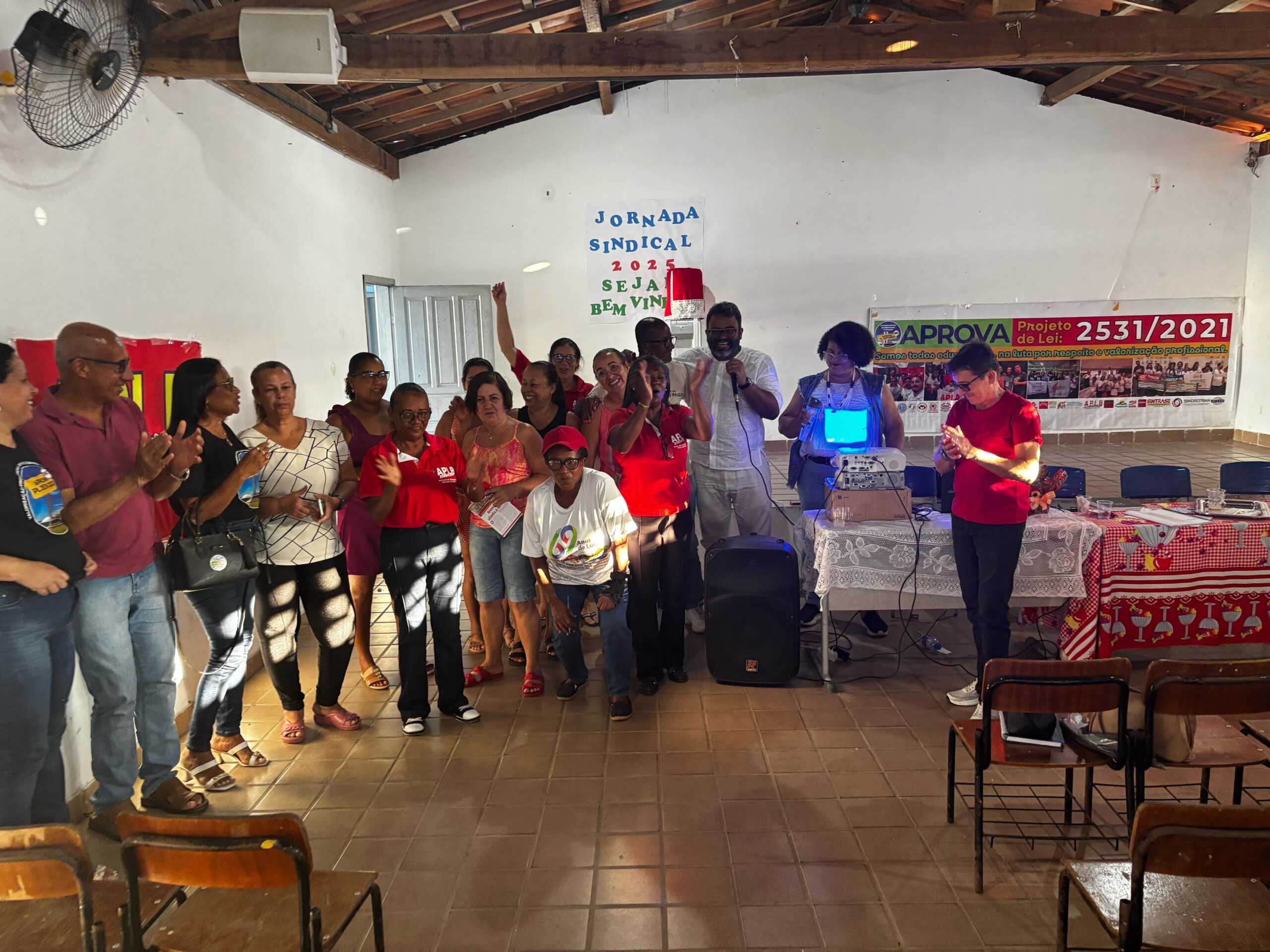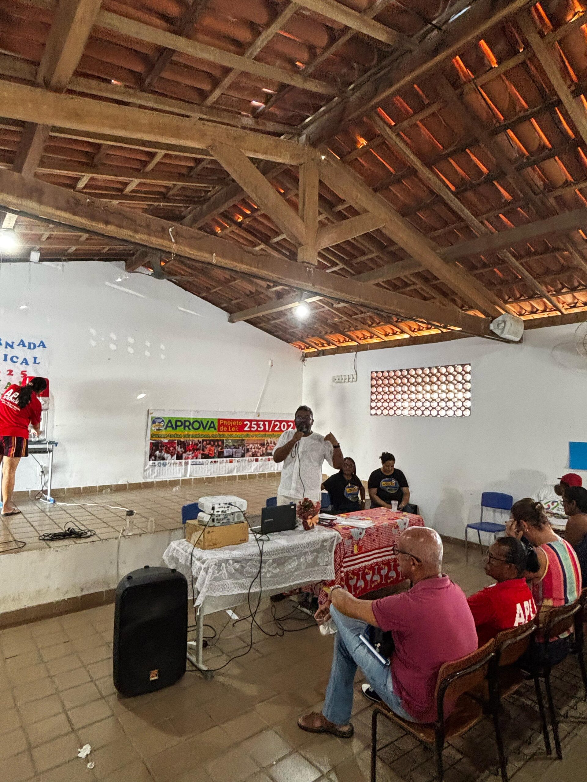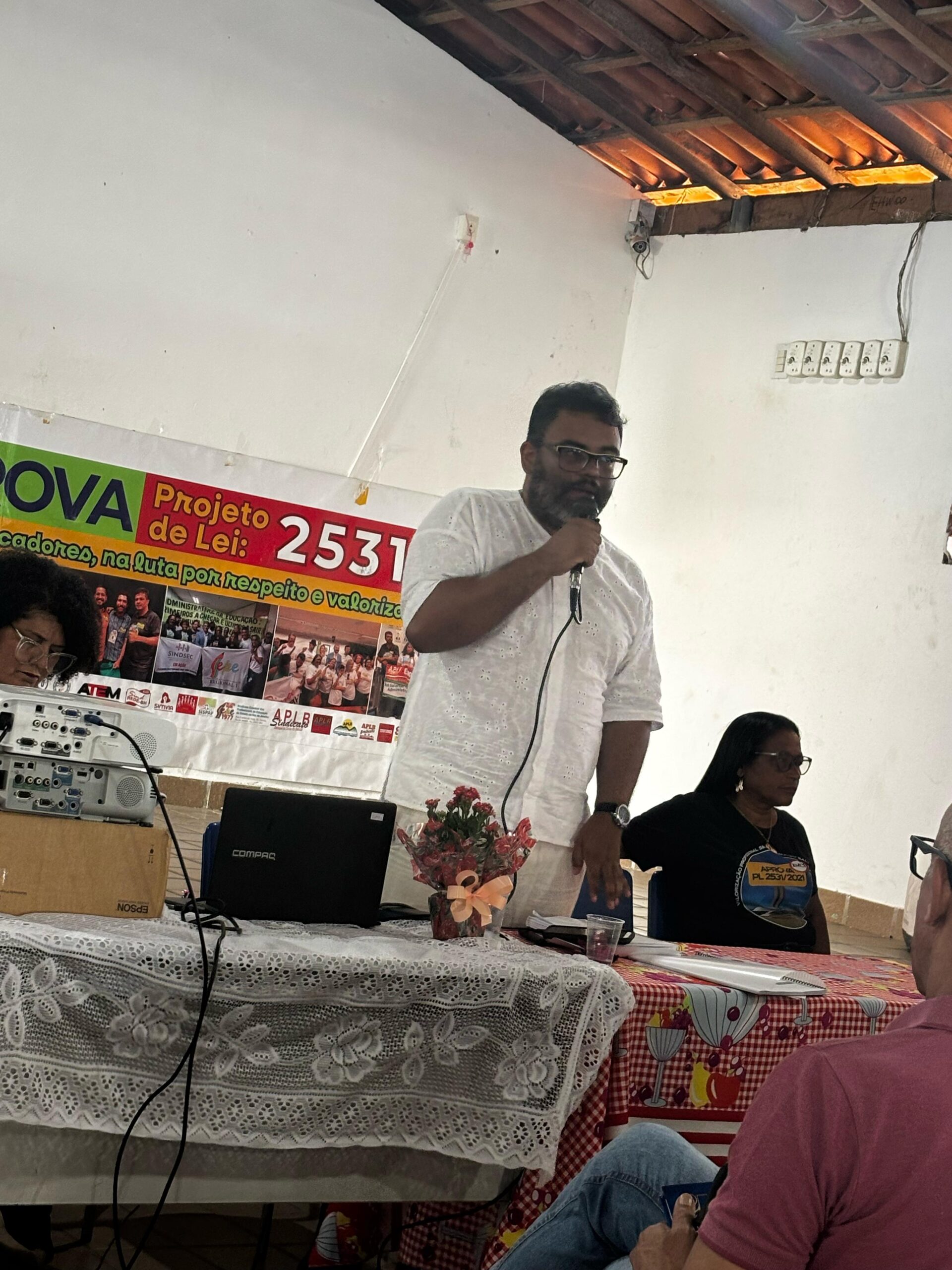 O encontro foi para debater a luta em defesa do PL 2531/2025 que garante o piso para funcionários da Educação/escola. Não houve votação – apenas a discussão da proposta,  com informações para a categoria.
