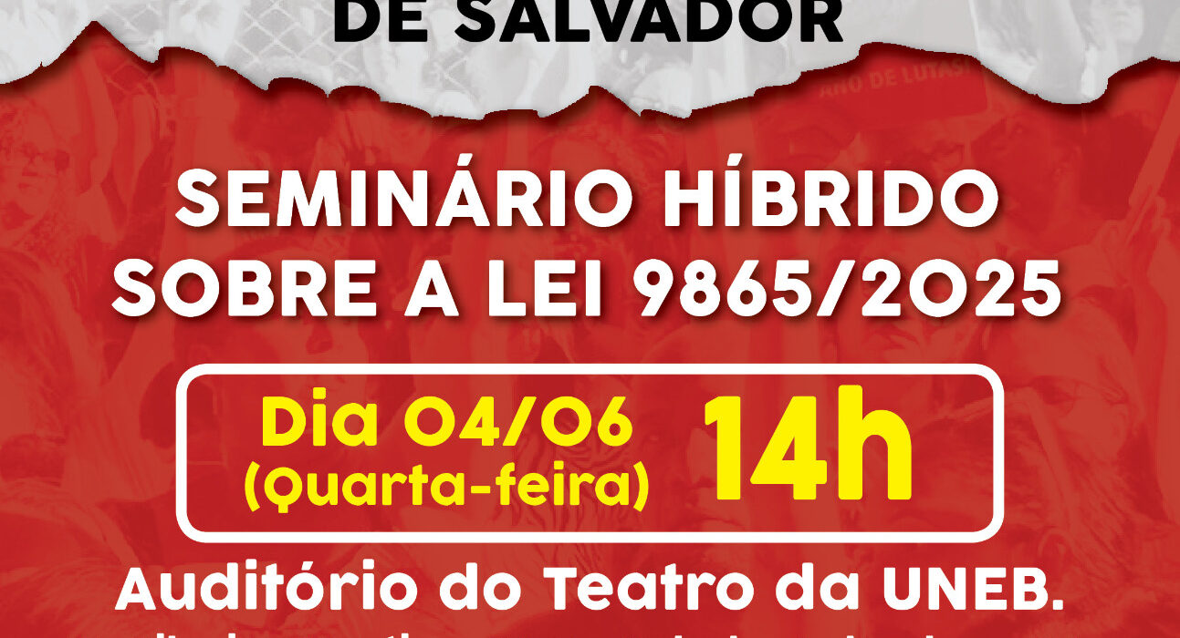 ATENÇÃO COMPANHEIROS (AS)! Por conta das vagas limitadas o nosso Seminário sobre a Lei 9865/2025 será híbrido (presencial e online) e transmitido pelo canal YouTube da APLB. Acesse => AQUI É muito importante que a rede municipal de ensino de Salvador acompanhe! Informação também é uma forma de lutar e essa ação faz parte da