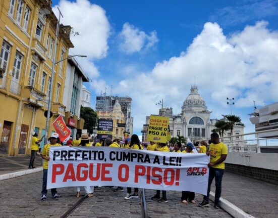 Na manhã desta quarta-feira (02/04), trabalhadores e trabalhadoras em educação da rede municipal de Salvador ocuparam a prefeitura em um ato de protesto.