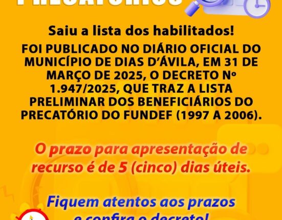 APLB DIAS D’ÁVILA DIVULGA INFORME SOBRE PRECATÓRIOS  – SAIU A LISTA DOS HABILITADOS