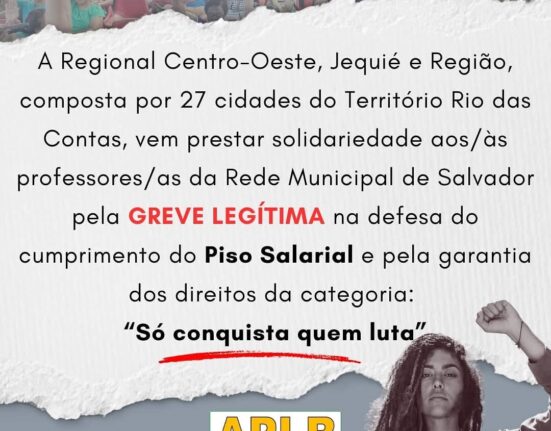 A APLB-Sindicato – entidade que representa os trabalhadores e trabalhadoras em educação da rede pública da Bahia – manifesta irrestrita solidariedade à greve.