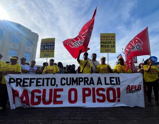 A manhã desta segunda-feira (19/05) foi de resistência e barulho em frente à Prefeitura de Salvador. A APLB-Sindicato, junto com a categoria em.
