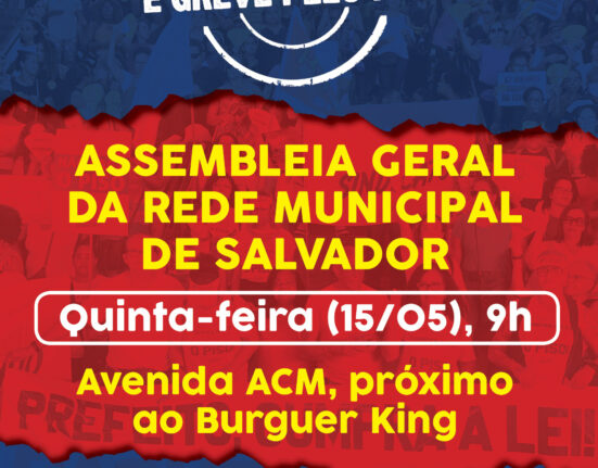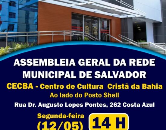 📣 ATENÇÃO PARA A CONVOCAÇÃO DA ASSEMBLEIA GERAL DA REDE MUNICIPAL DE SALVADOR! SEGUNDA (12/05), ÀS 14H, NO AUDITÓRIO DO CECBA.