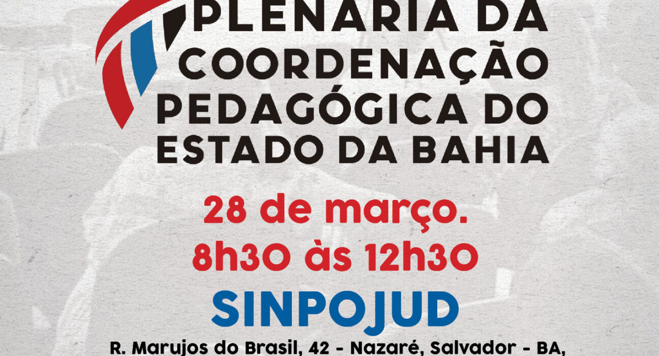 Na campanha salarial deste ano garantimos uma conquista histórica: a pecúnia para as/os Coordenadoras/es Pedagógicas/os da rede estadual de educação baiana. Esta é uma vitória importante que precisa ser valorizada! Por isso, convidamos todas/os para uma plenária, onde discutiremos esta e outras pautas fundamentais para a categoria. Sua participação é essencial! Nosso evento será híbrido