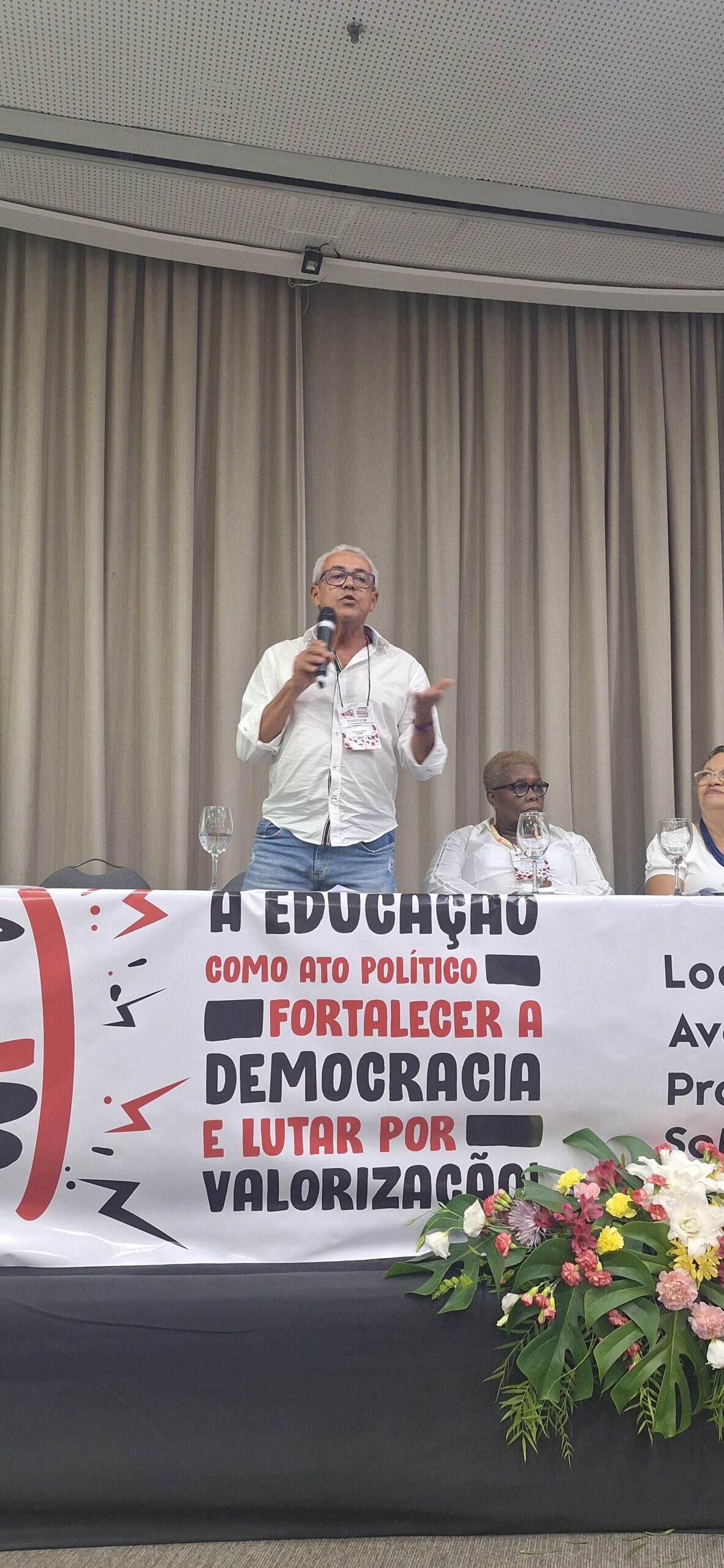 “Acabamos de realizar uma das mesas mais importantes do nosso Conselho, a dos funcionários da Educação, que são parte fundamental da escola, que é feita por trabalhadores e trabalhadoras: professores, coordenadores pedagógicos, porteiros, vigias, motoristas, entre outros. Todos eles são educadores dentro da nossa concepção”, afirmou Rui Oliveira, coordenador geral da APLB.