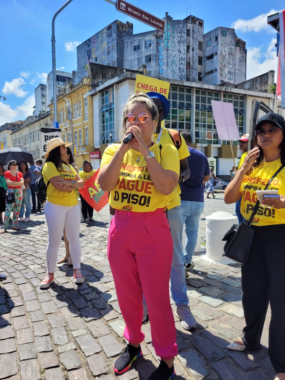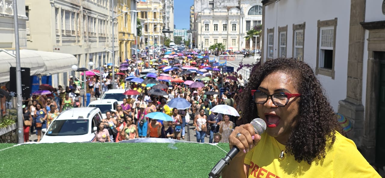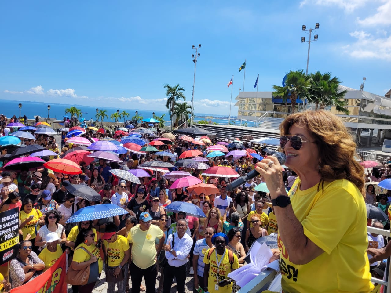 “Hoje, a Praça Municipal se encheu de vozes unidas em defesa da educação. A falta de diálogo e o não cumprimento da Lei do Piso Salarial não podem ser ignorados. Estamos aqui para reafirmar que a valorização dos educadores é uma prioridade e não vamos desistir de lutar por nossos direitos.”, afirmou Elza Melo, diretora da APLB-Sindicato.