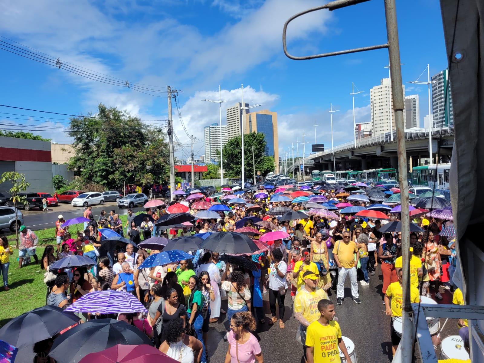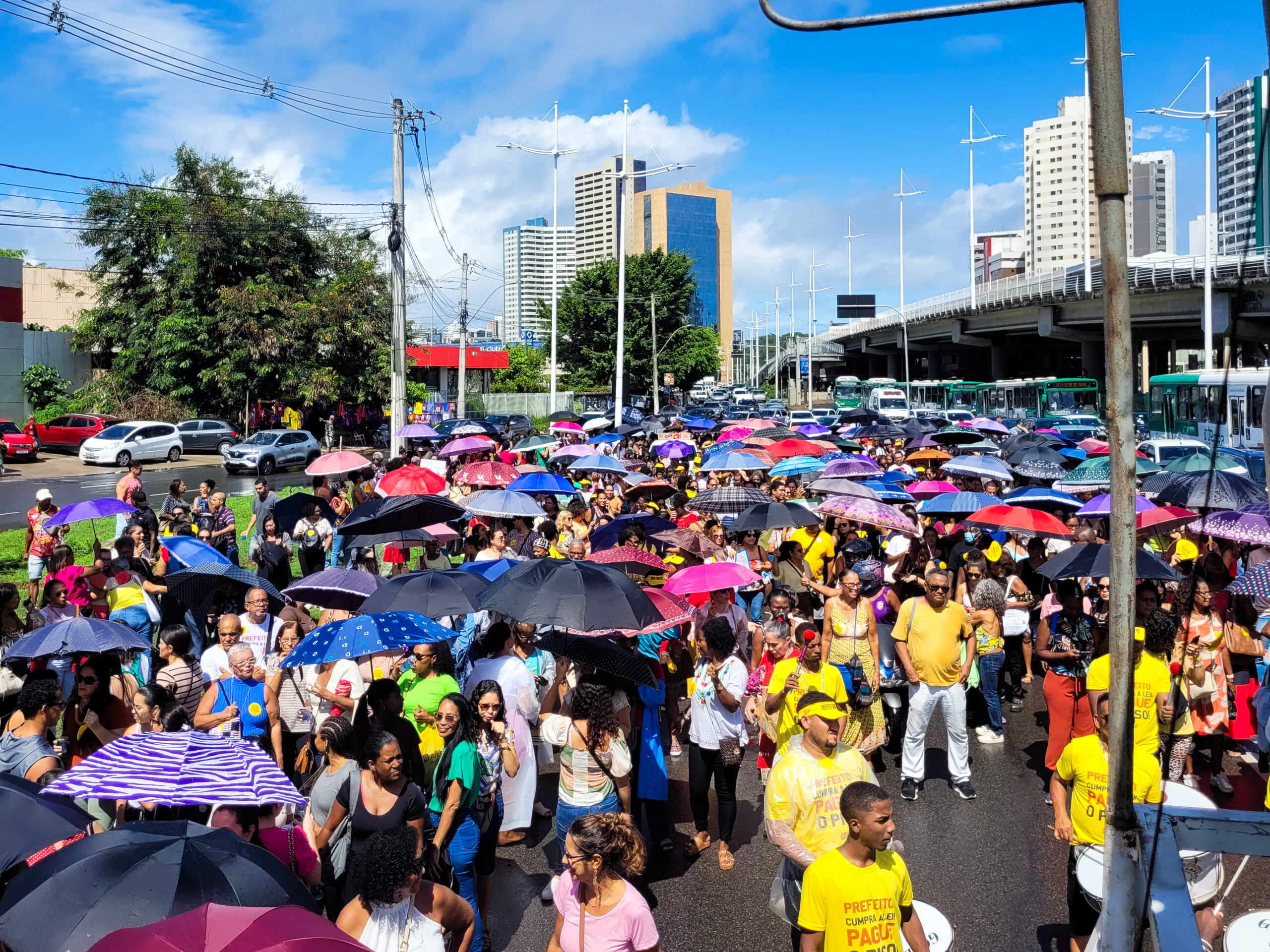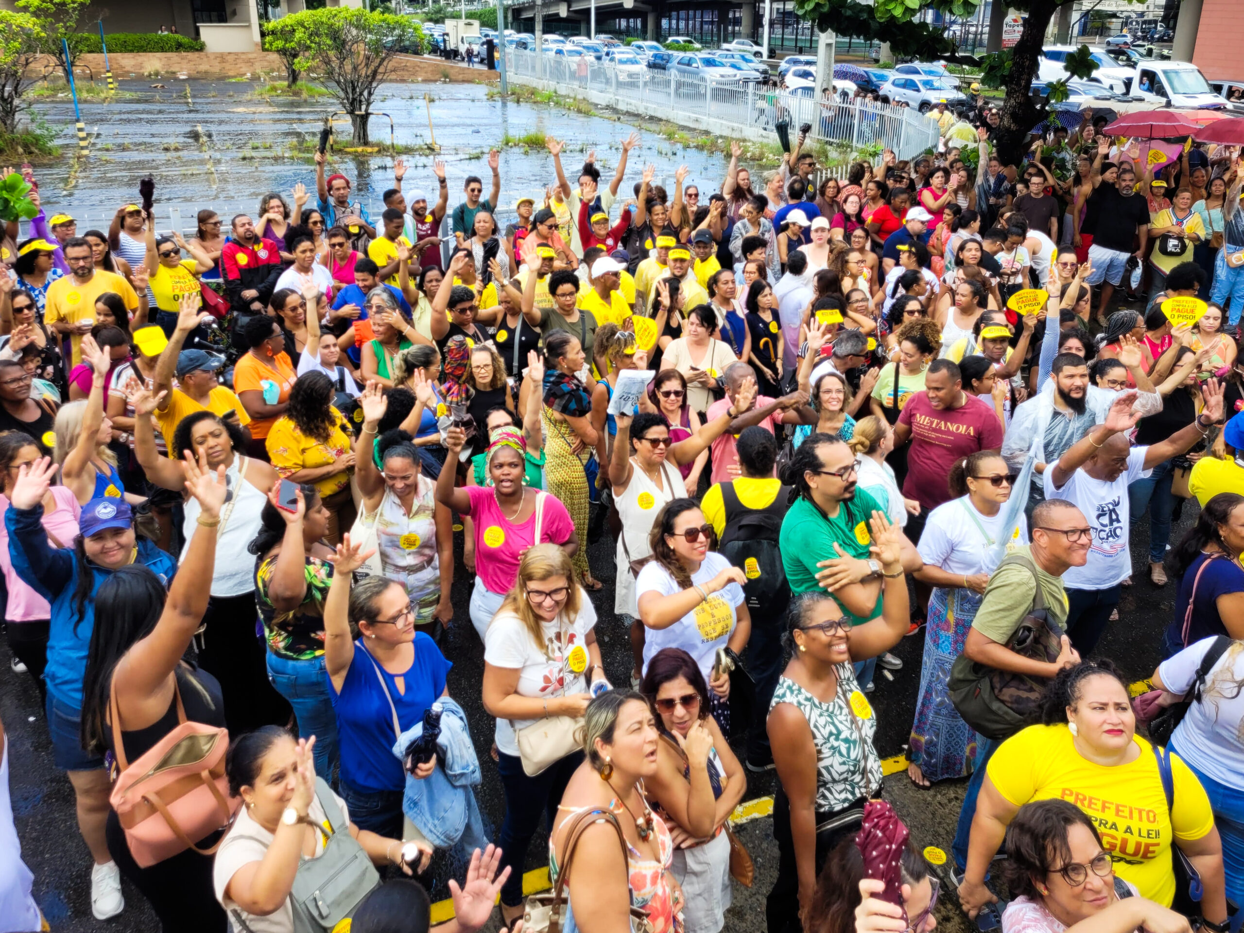 A manhã desta quinta-feira, 15 de maio, foi marcada por mais um grande ato de resistência e união dos trabalhadores e trabalhadoras da educação municipal de Salvador. Em assembleia realizada na Avenida ACM, uma das mais movimentadas da cidade, a categoria, reunida em peso, aprovou por ampla maioria a manutenção da greve, que hoje completa 10 dias de luta por valorização e respeito ao Piso Nacional da Educação.