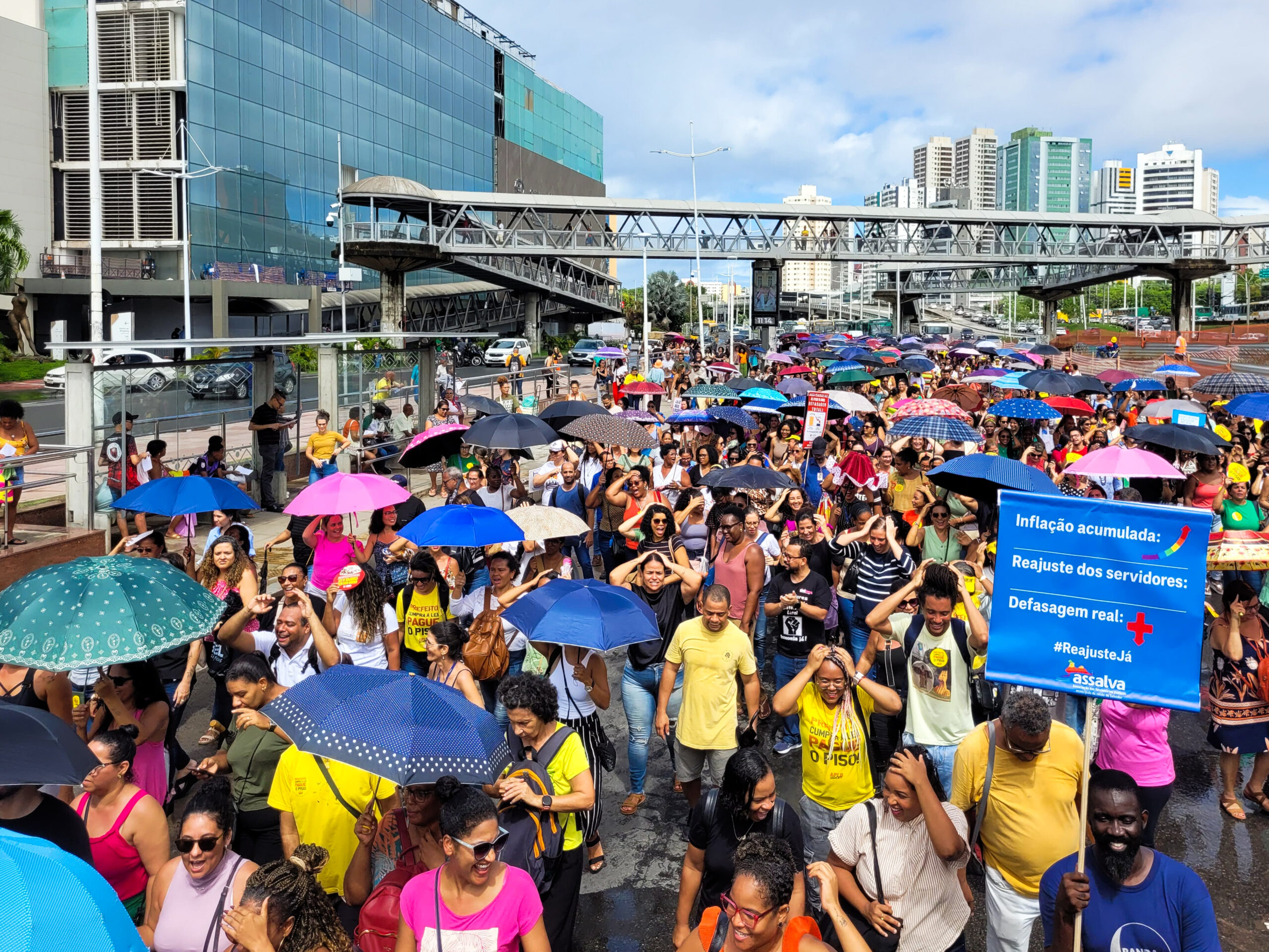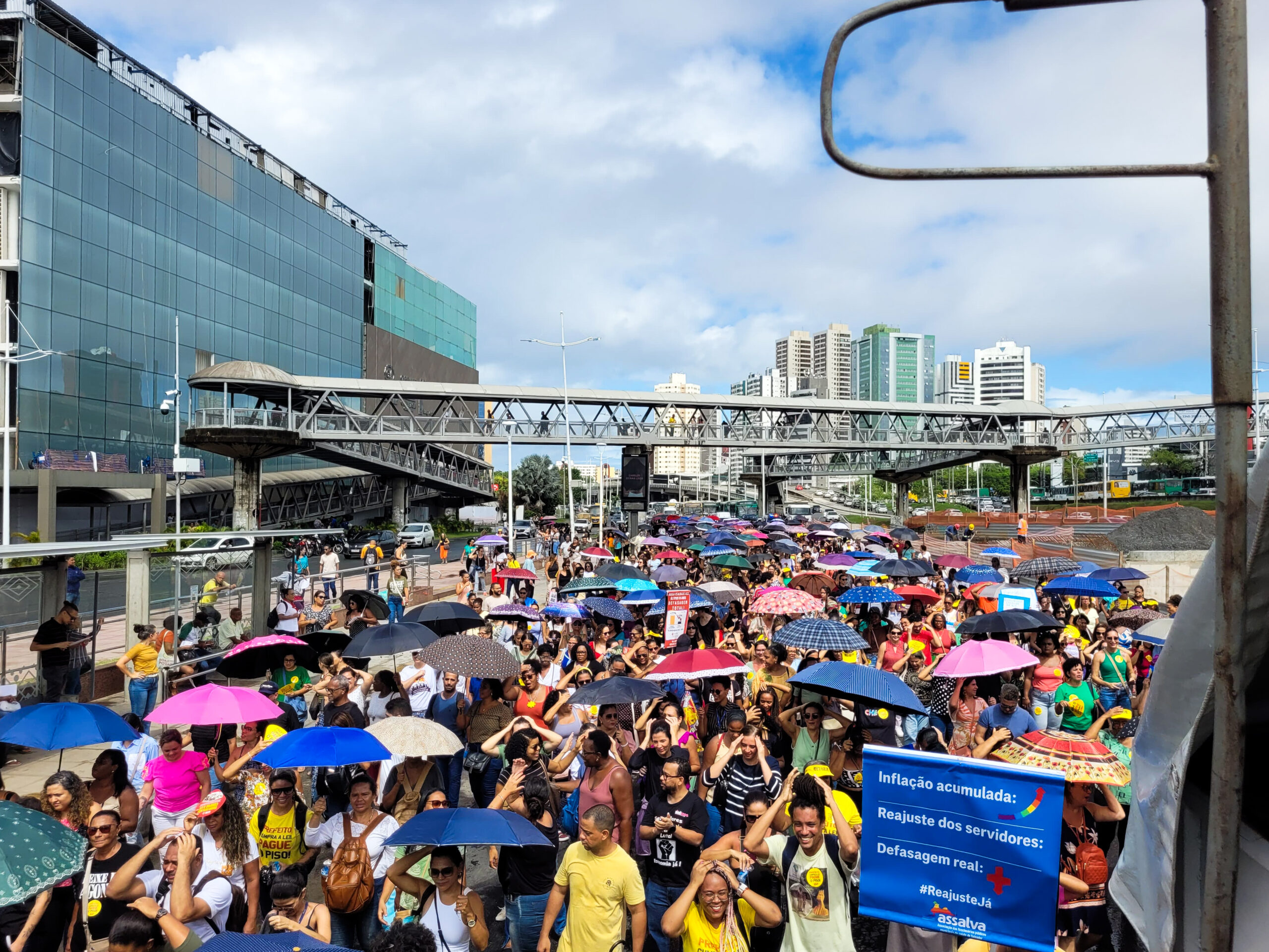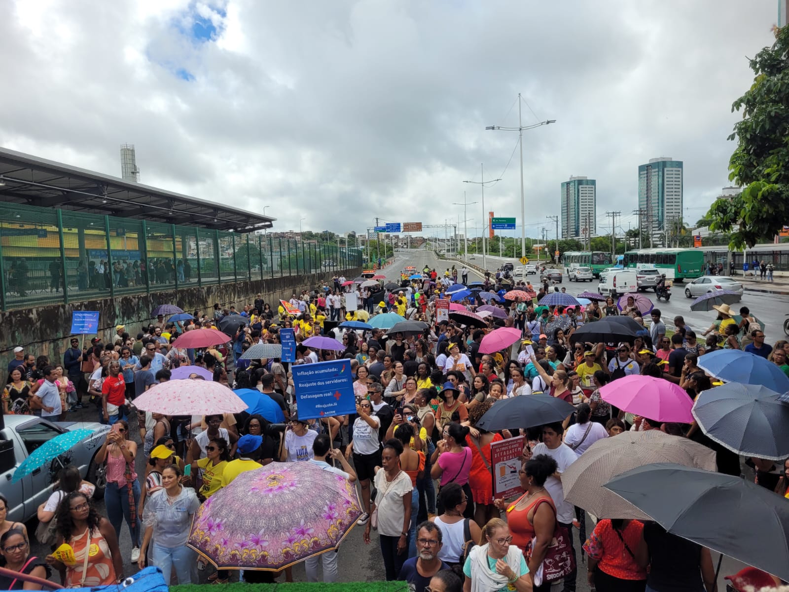 A manhã desta quinta-feira, 15 de maio, foi marcada por mais um grande ato de resistência e união dos trabalhadores e trabalhadoras da educação municipal de Salvador. Em assembleia realizada na Avenida ACM, uma das mais movimentadas da cidade, a categoria, reunida em peso, aprovou por ampla maioria a manutenção da greve, que hoje completa 10 dias de luta por valorização e respeito ao Piso Nacional da Educação.
