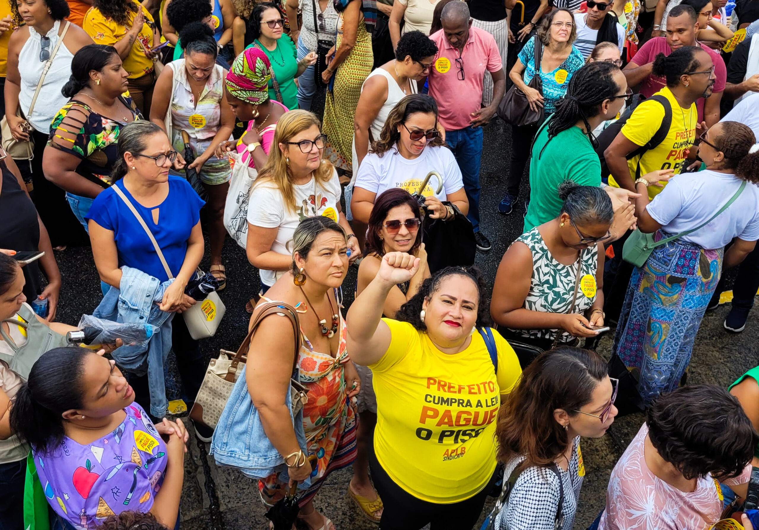 A mobilização foi ainda mais expressiva com a união dos educadores a outros servidores municipais, formando um verdadeiro mar de trabalhadores em luta.