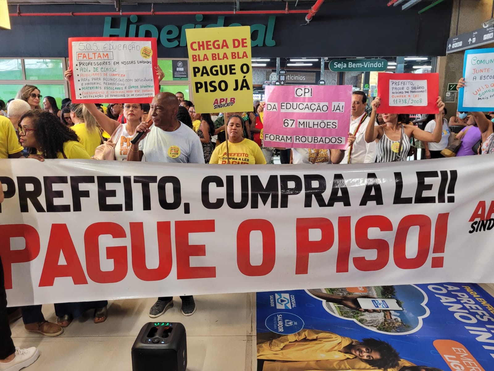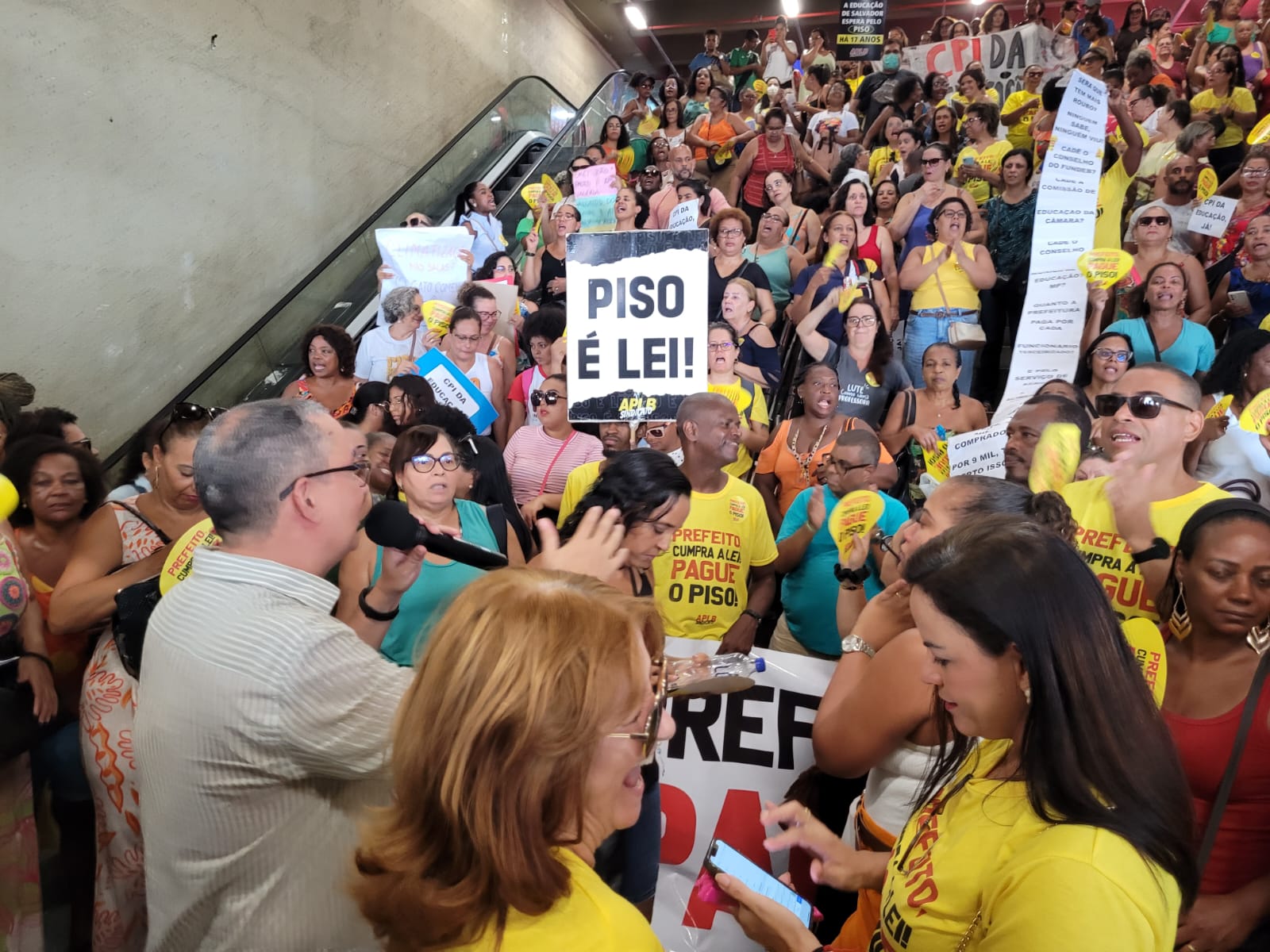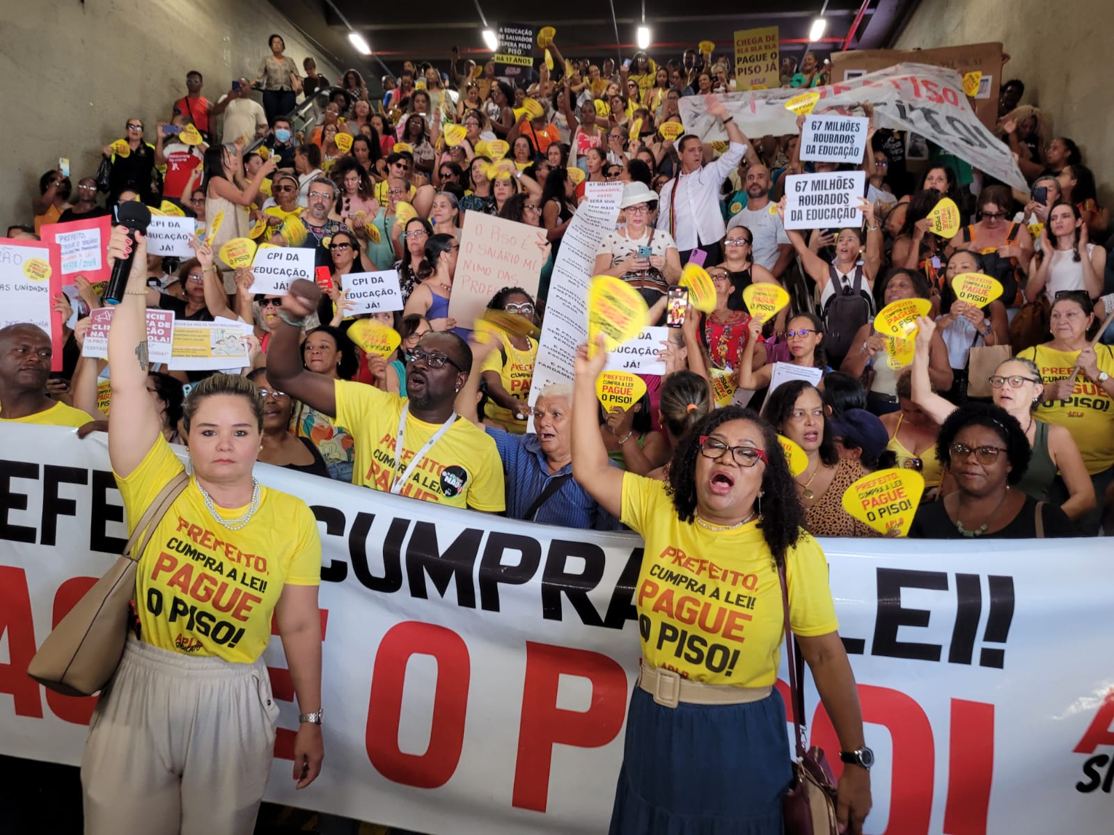 Durante toda a manhã desta terça-feira (29), as escadarias da Estação da Lapa foram tomadas por professores da rede municipal de ensino de Salvador. Em mais uma atividade da agenda de mobilizações, a APLB Sindicato dos Trabalhadores em Educação realizou a *Feira de Denúncias*, chamando atenção da população para o descaso da gestão do prefeito Bruno Reis com a educação pública.