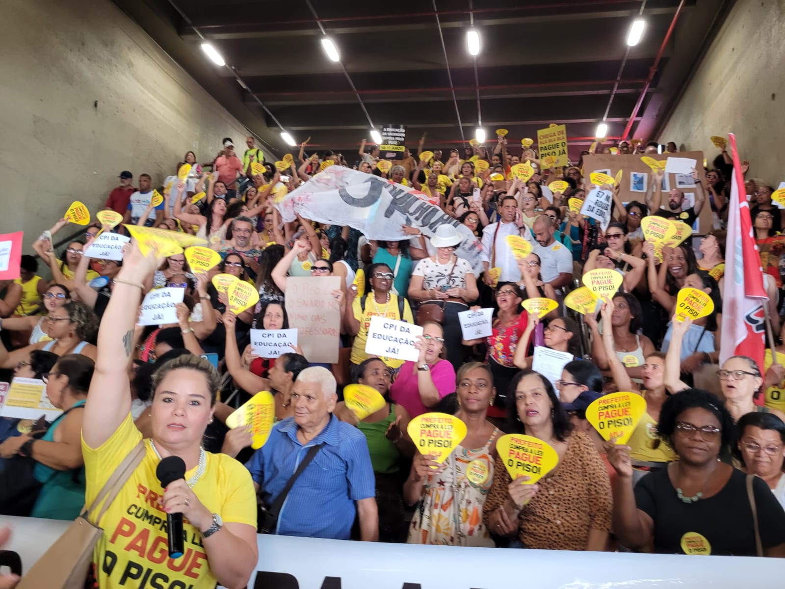A diretora da APLB Elza Melo também destacou o simbolismo da ocupação na Lapa. “Aqui passam milhares de trabalhadores todos os dias. Fizemos questão de estar nesse espaço para mostrar que o desmonte da educação afeta a todos. Não lutamos só por salário, mas por uma escola digna para nossas crianças e adolescentes. A educação está gritando, e o prefeito precisa ouvir.”