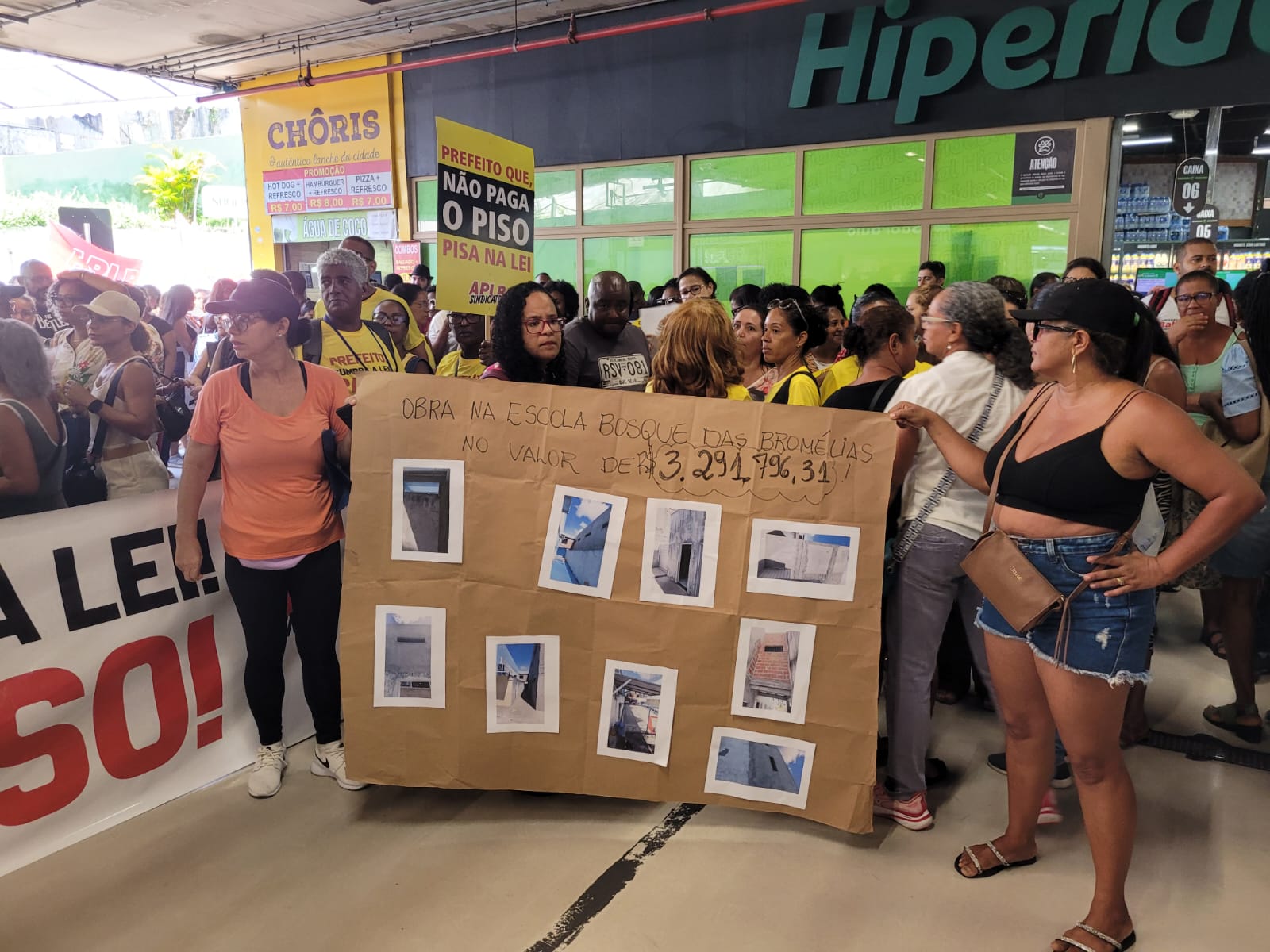 Entre cartazes, faixas e intervenções artísticas com paródias musicais criadas pelos próprios educadores, os profissionais da Educação denunciaram a ausência de condições adequadas de trabalho, o não cumprimento do Piso Nacional do Magistério, a falta de climatização nas salas, além de escolas sucateadas e a desvalorização dos profissionais da educação.