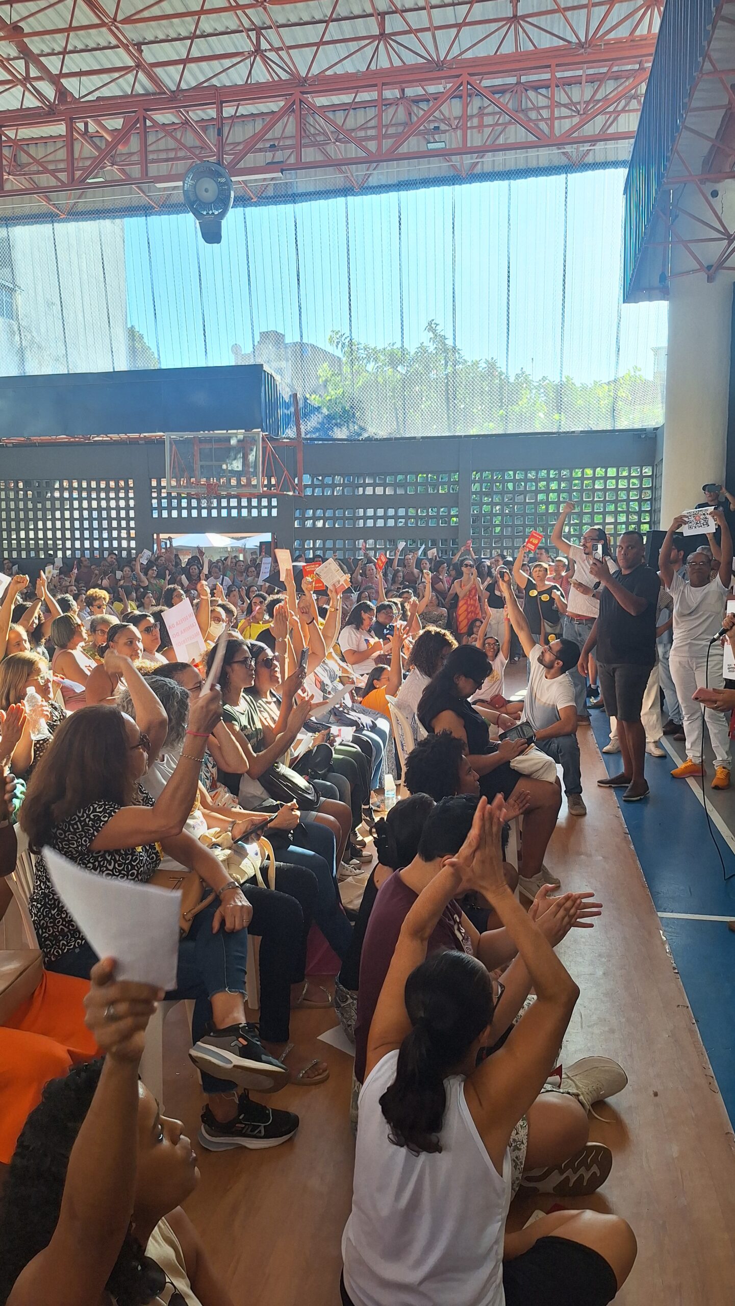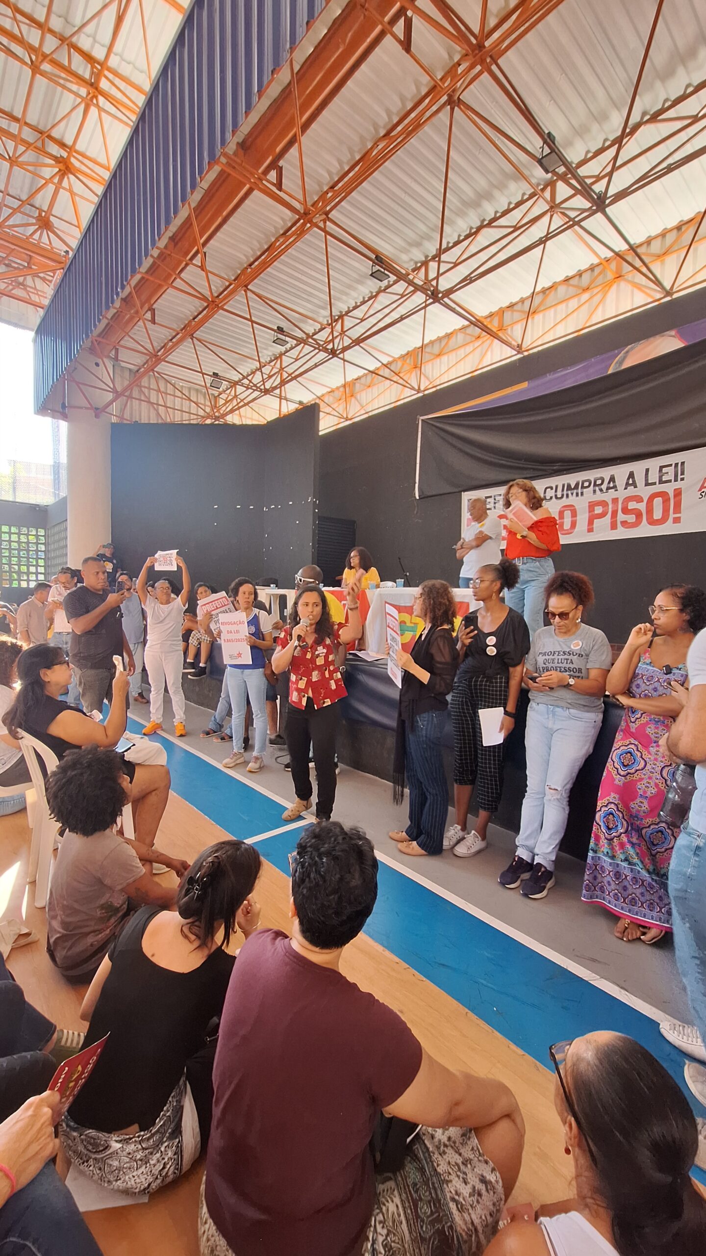 Nesta segunda-feira (09/06), 35º dia de greve, a APLB-Sindicato realizou mais uma assembleia com as/os professoras/es da rede municipal de Salvador, no Ginásio dos Bancários. Por unanimidade, a categoria decidiu manter a greve e aprovou uma nova agenda de mobilizações para esta semana. Após a assembleia, as/os educadoras/es saíram em caminhada até a Praça Municipal. O principal ponto de pauta continua sendo o pagamento do Piso Salarial Nacional do Magistério.