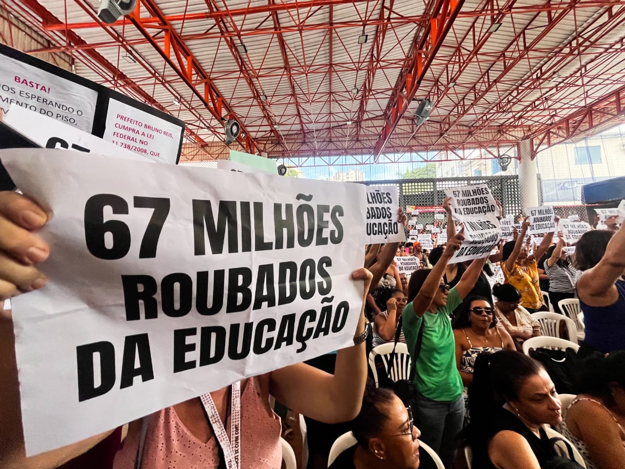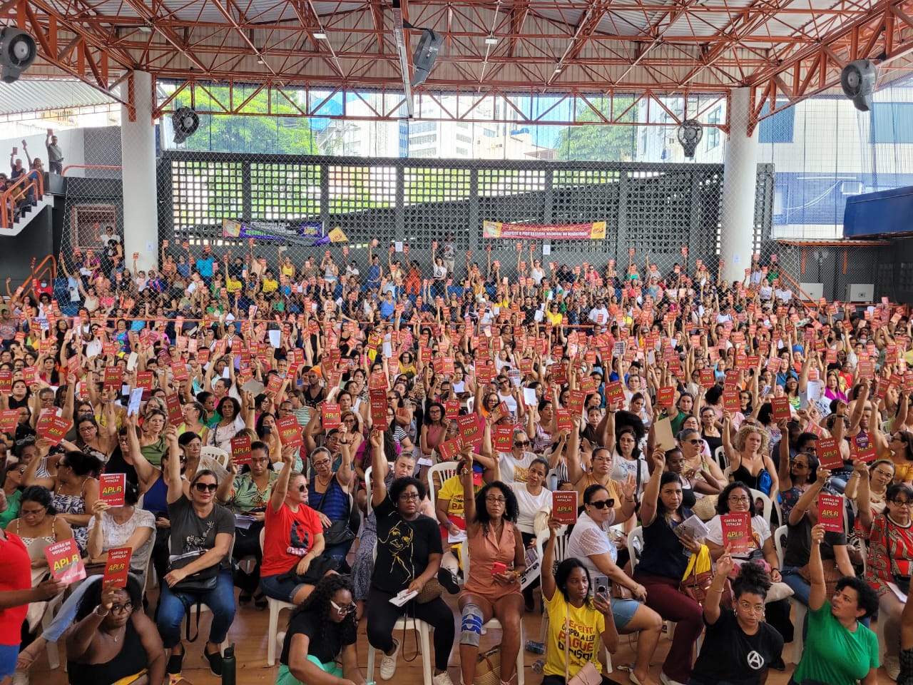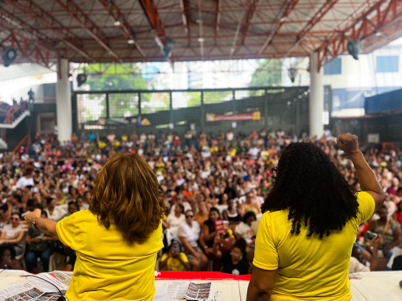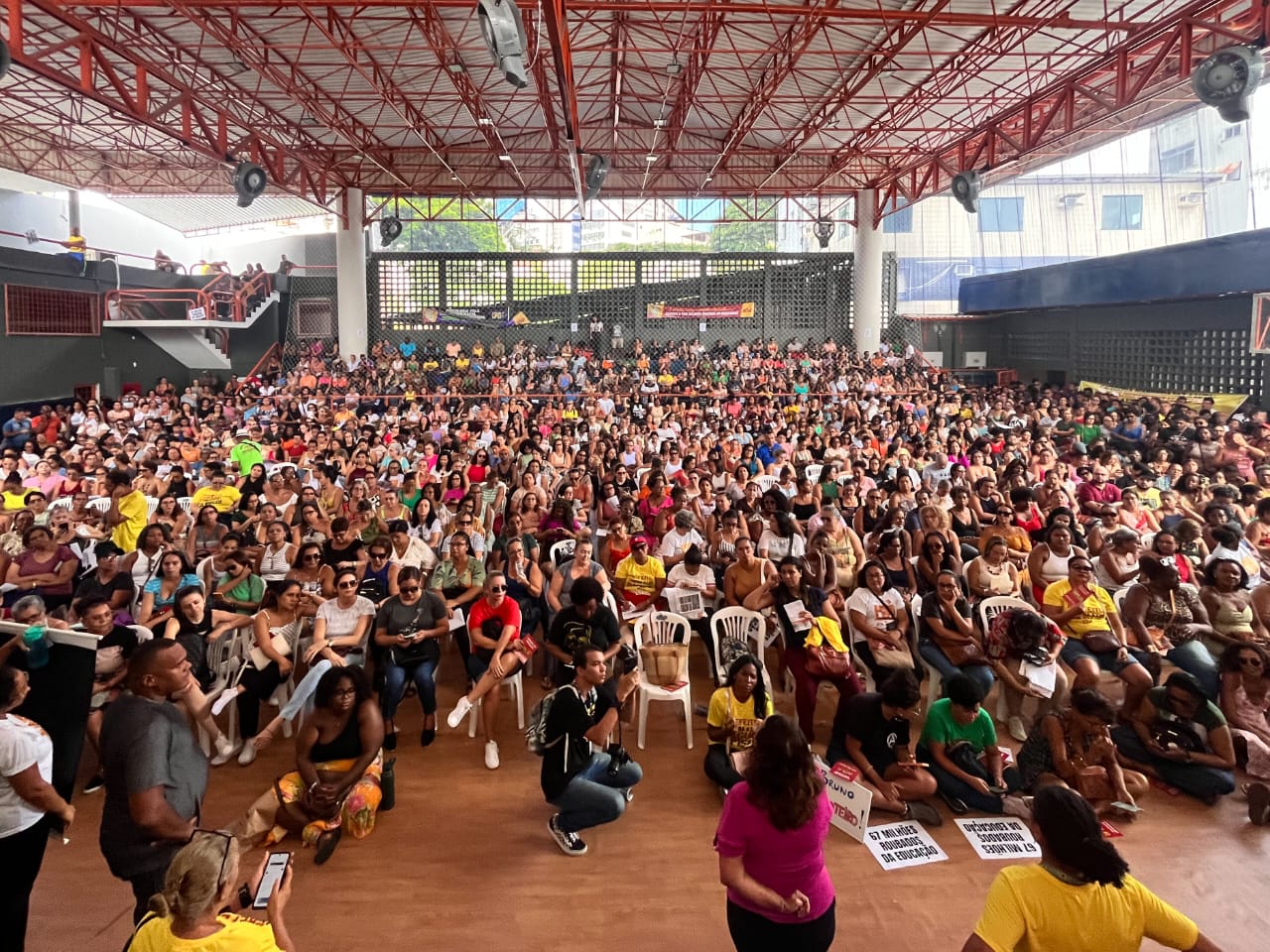Ginásio de Esportes dos Bancários ficou pequeno para a força da categoria! Em assembleia massiva realizada nesta terça-feira (1º), os trabalhadores em educação da rede municipal de Salvador aprovaram **paralisação de 72 horas e estado de greve**, reforçando a mobilização por reajuste salarial e melhores condições de trabalho. A atividade faz parte da Campanha Salarial da categoria e contou com a participação expressiva dos educadores, que deram um recado claro à gestão municipal: **valorização já!**