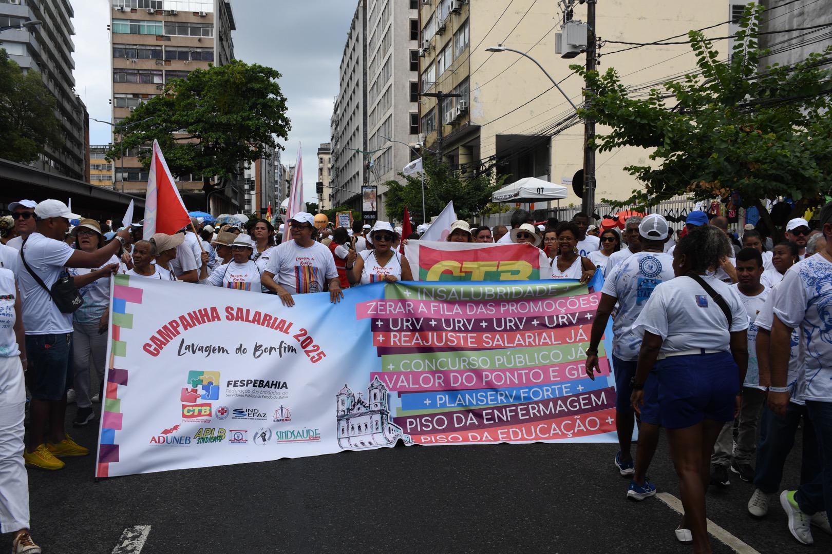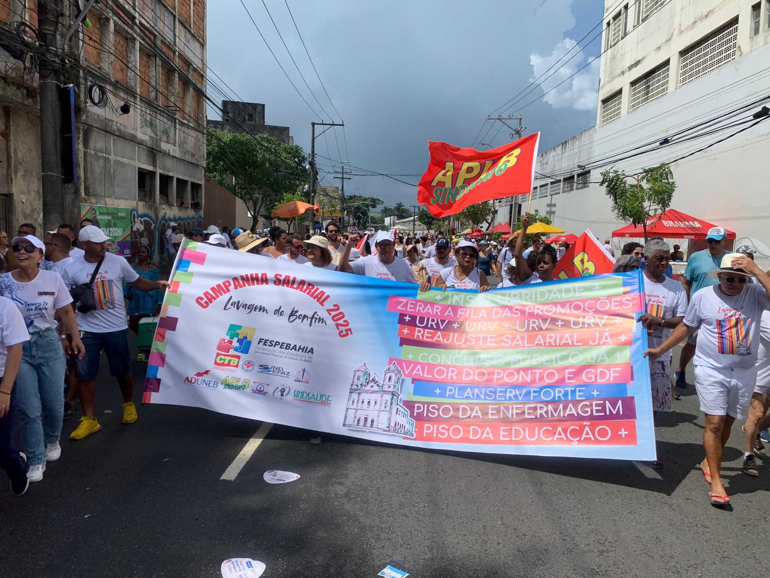 Nesta quinta-feira, 16 de janeiro, a APLB-Sindicato participou ativamente da tradicional Lavagem do Bonfim, um dos maiores eventos culturais e religiosos da Bahia. Junto à Federação de Servidores Públicos da Bahia (FEEB), a entidade levou às ruas a pauta dos trabalhadores em educação, reforçando a luta por melhores condições de trabalho e o cumprimento das reivindicações da categoria, entre elas, a reformulação do plano de carreira e o cumprimento do piso salarial do Magistério.