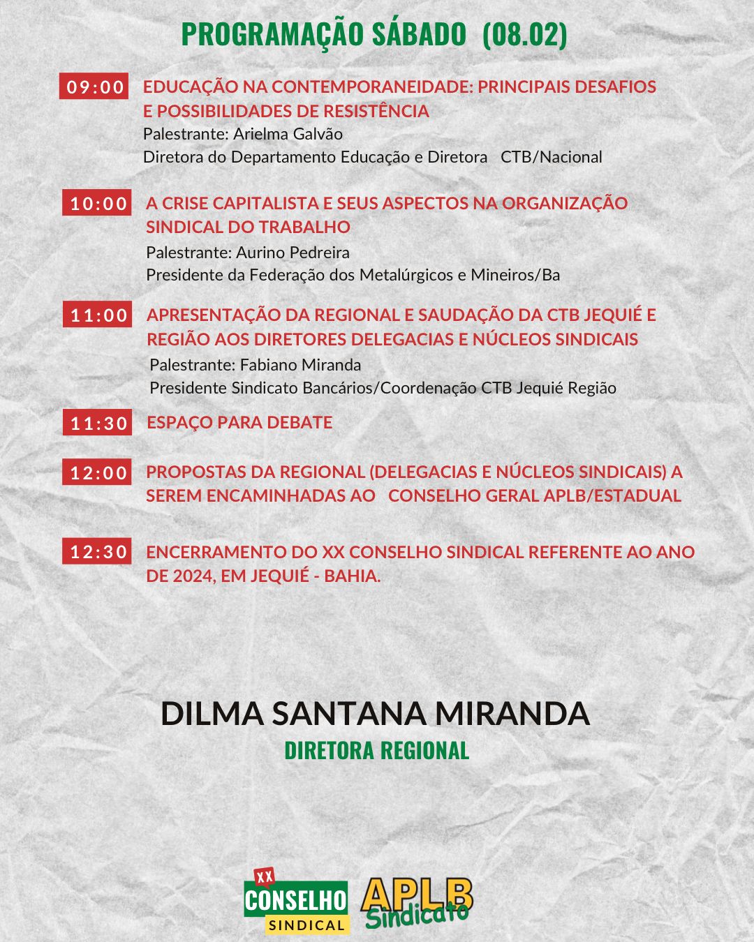 Nos dias 7 e 8 de fevereiro (sexta e sábado), a cidade de Jequié sedia o XX Conselho Sindical Regional Centro-Oeste, reunindo educadores, sindicalistas e representantes da categoria para discutir os desafios e caminhos da educação e da luta sindical. Com o tema “Do Local ao Global, Fortalecendo a Educação e a Organização Sindical”, o evento ocorre na Câmara de Vereadores, localizada na Rua 2 de Julho, no centro da cidade.