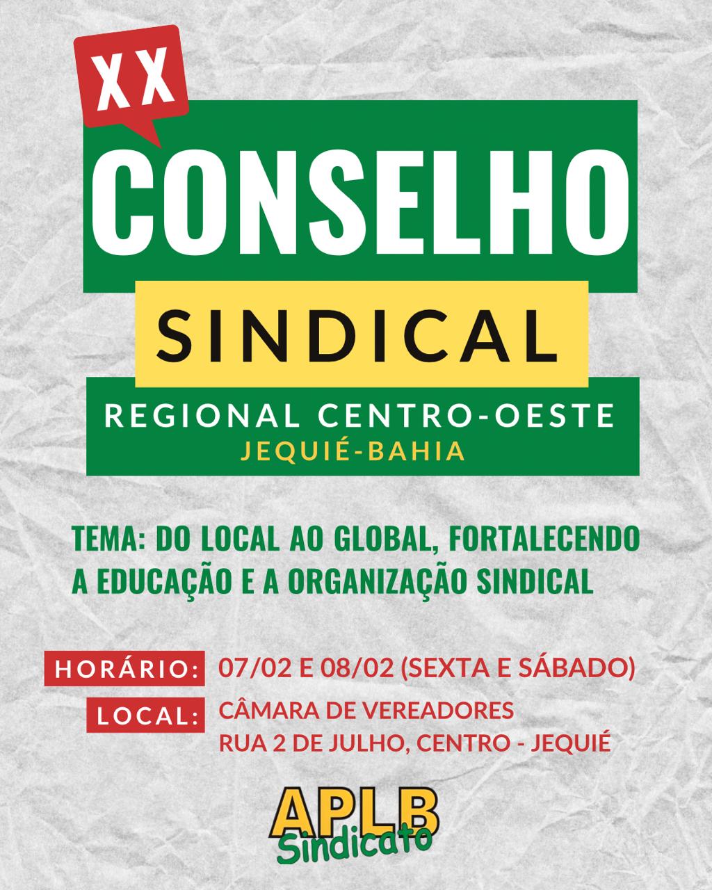Nos dias 7 e 8 de fevereiro (sexta e sábado), a cidade de Jequié sedia o XX Conselho Sindical Regional Centro-Oeste, reunindo educadores, sindicalistas e representantes da categoria para discutir os desafios e caminhos da educação e da luta sindical. Com o tema “Do Local ao Global, Fortalecendo a Educação e a Organização Sindical”, o evento ocorre na Câmara de Vereadores, localizada na Rua 2 de Julho, no centro da cidade.